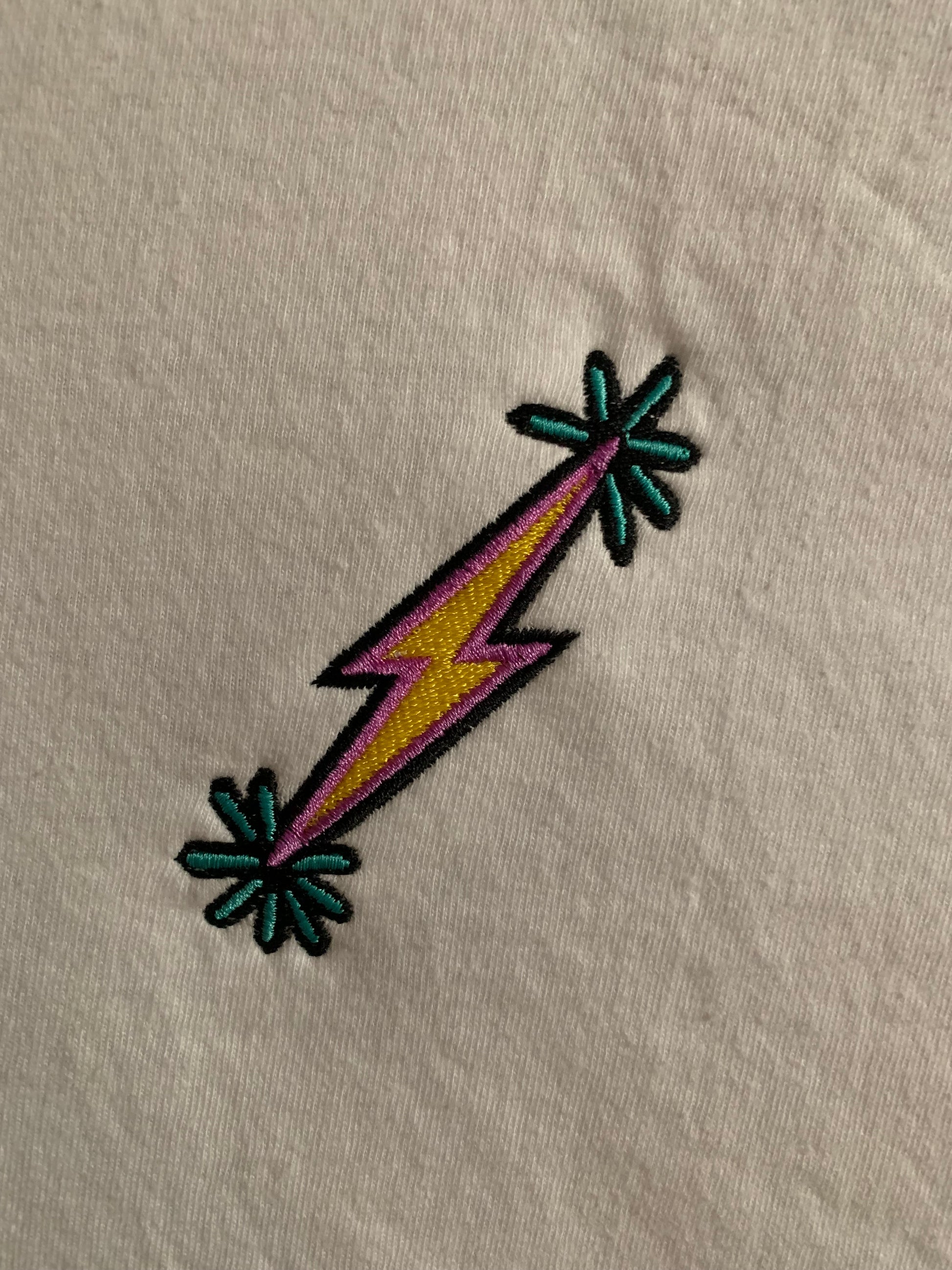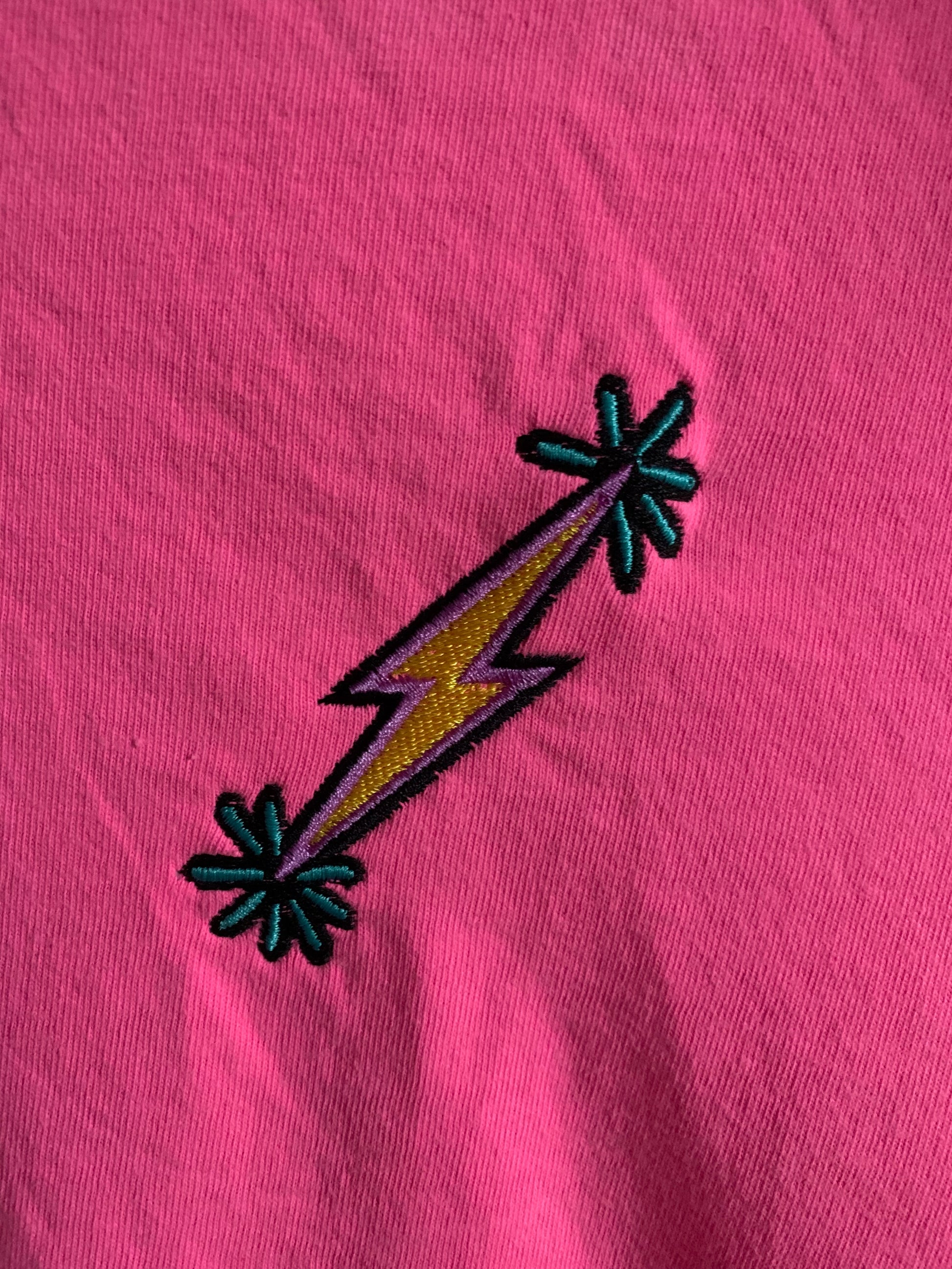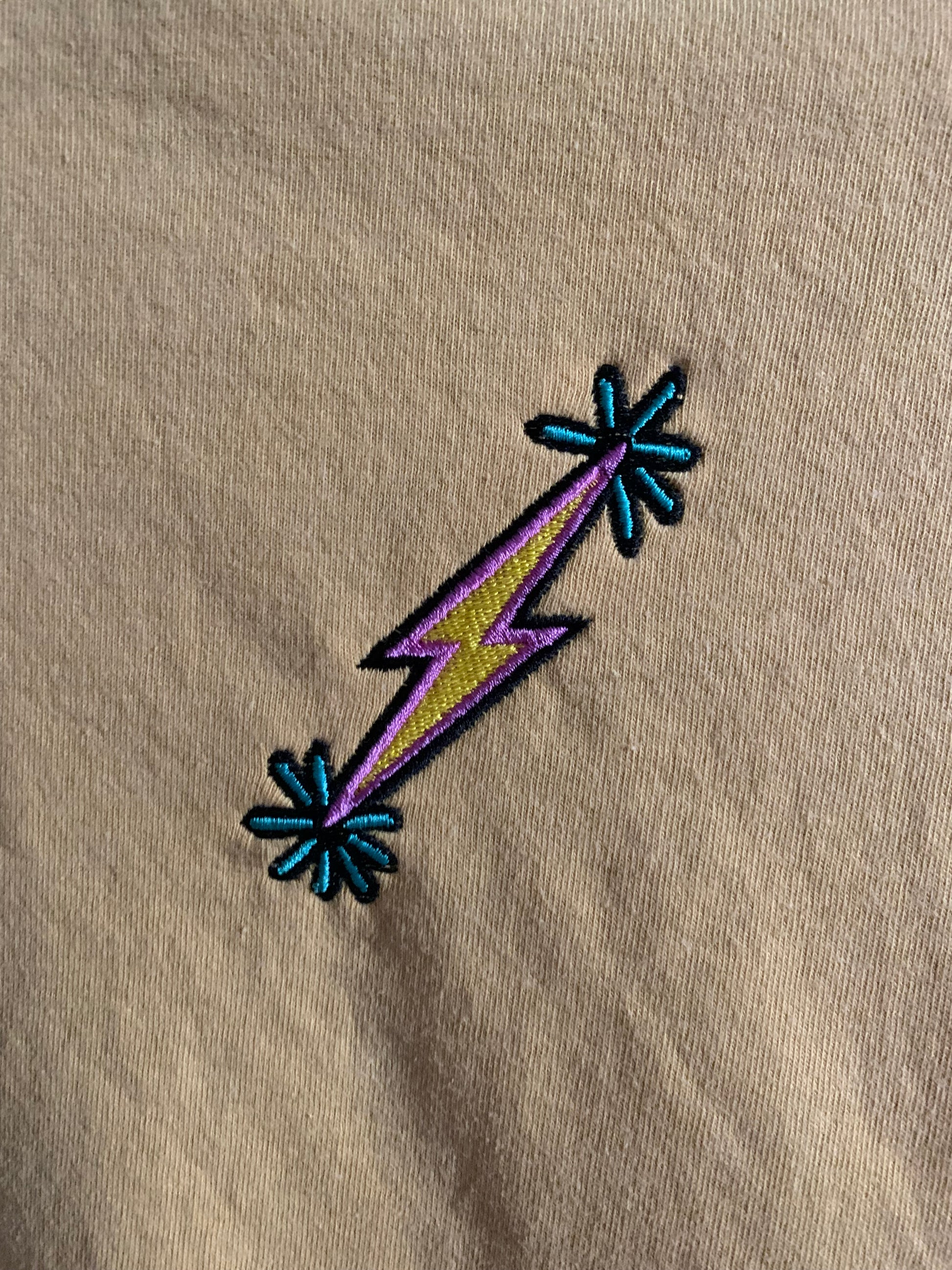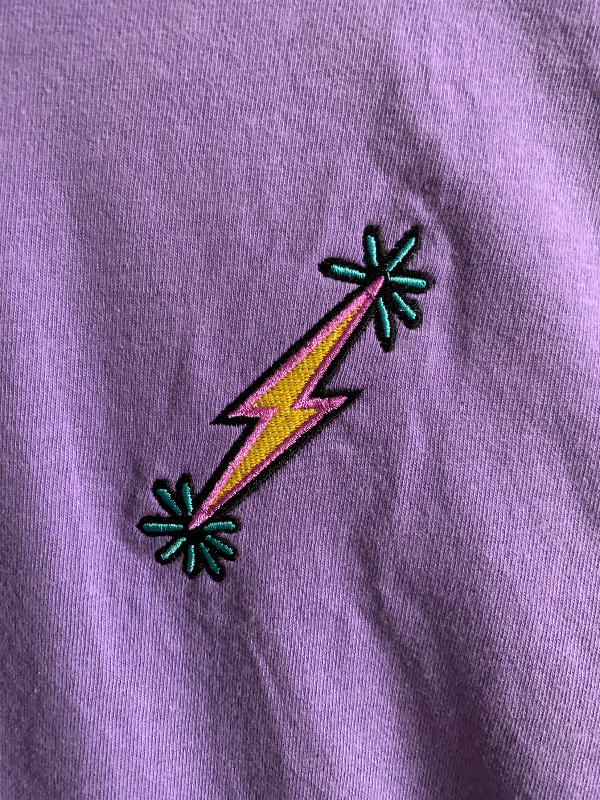 A comfy, 6.1 oz, heavyweight, garment dyed, cotton shirt with the Choss lightning bolt embroidered on the front L chest and the Climb Choss design screen printed big on the back.