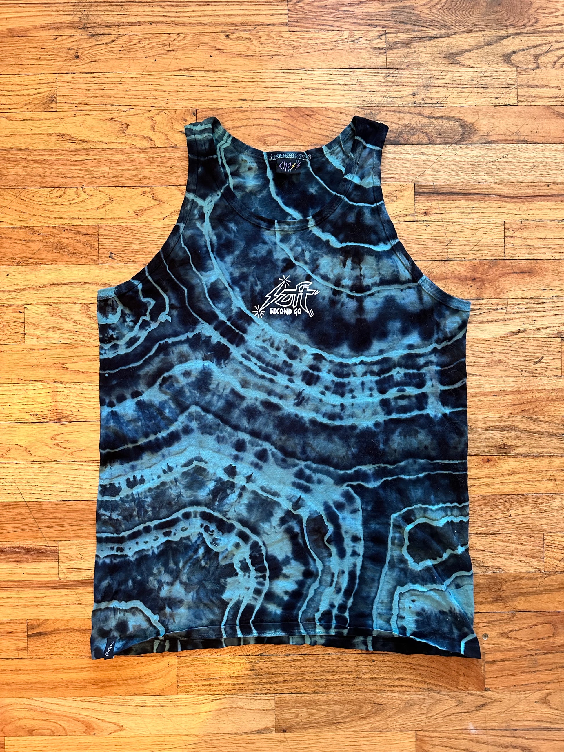 100% U.S. grown cotton tank top with the "Soft, Second Go" design screen printed in white on the front center chest and now with the new Choss lightning bolt hem tag.