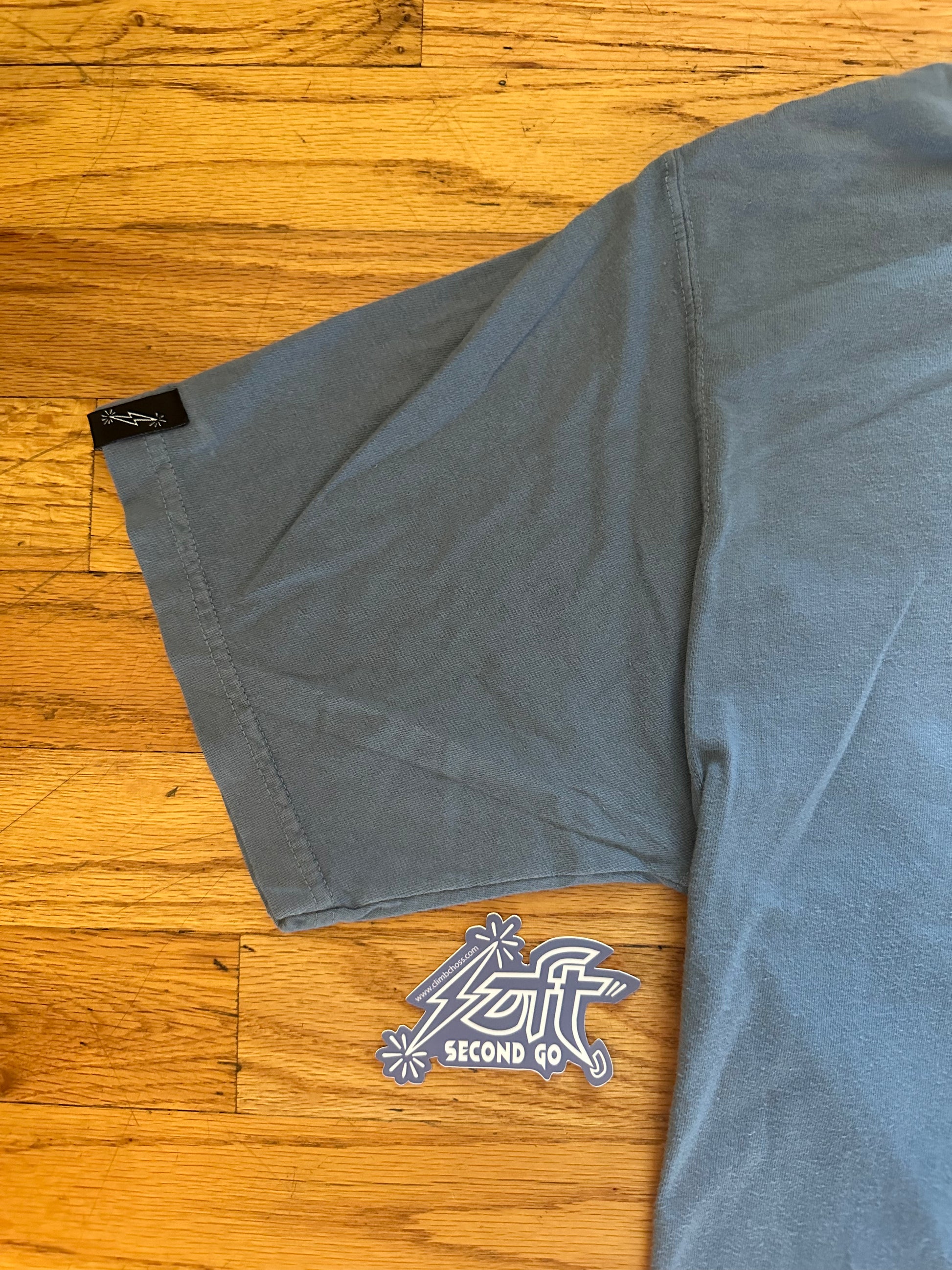 100% U.S. grown cotton tee with the "Soft, Second Go" design screen printed in white on the front center chest and now with the new Choss lightning bolt hem tag.